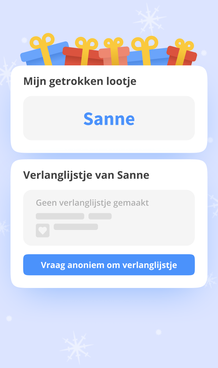 Elke deelnemer kan nu een lootje trekken en een verlangijstje maken. De organisator kan zien wie een lootjes heeft getrokken, wie een verlanglijstje heeft gemaakt en wie dit nog moet doen.